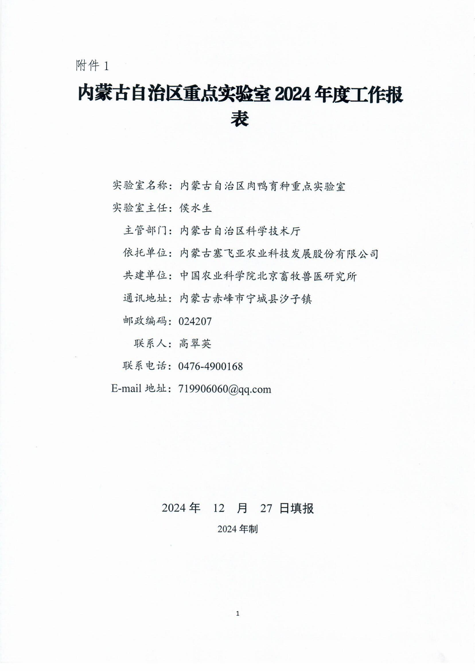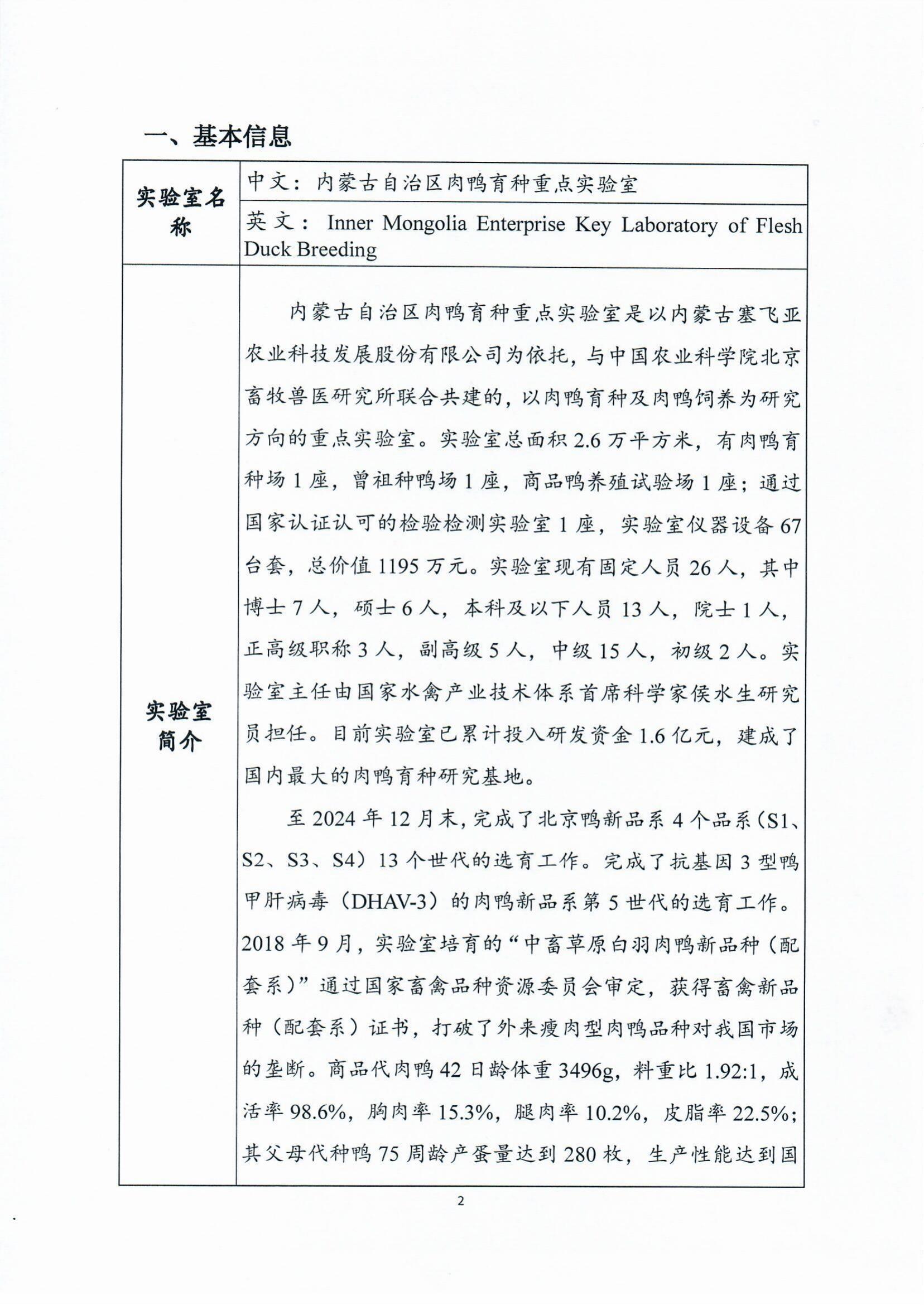 【概要描述】内蒙古自治区肉鸭育种重点实验室报表