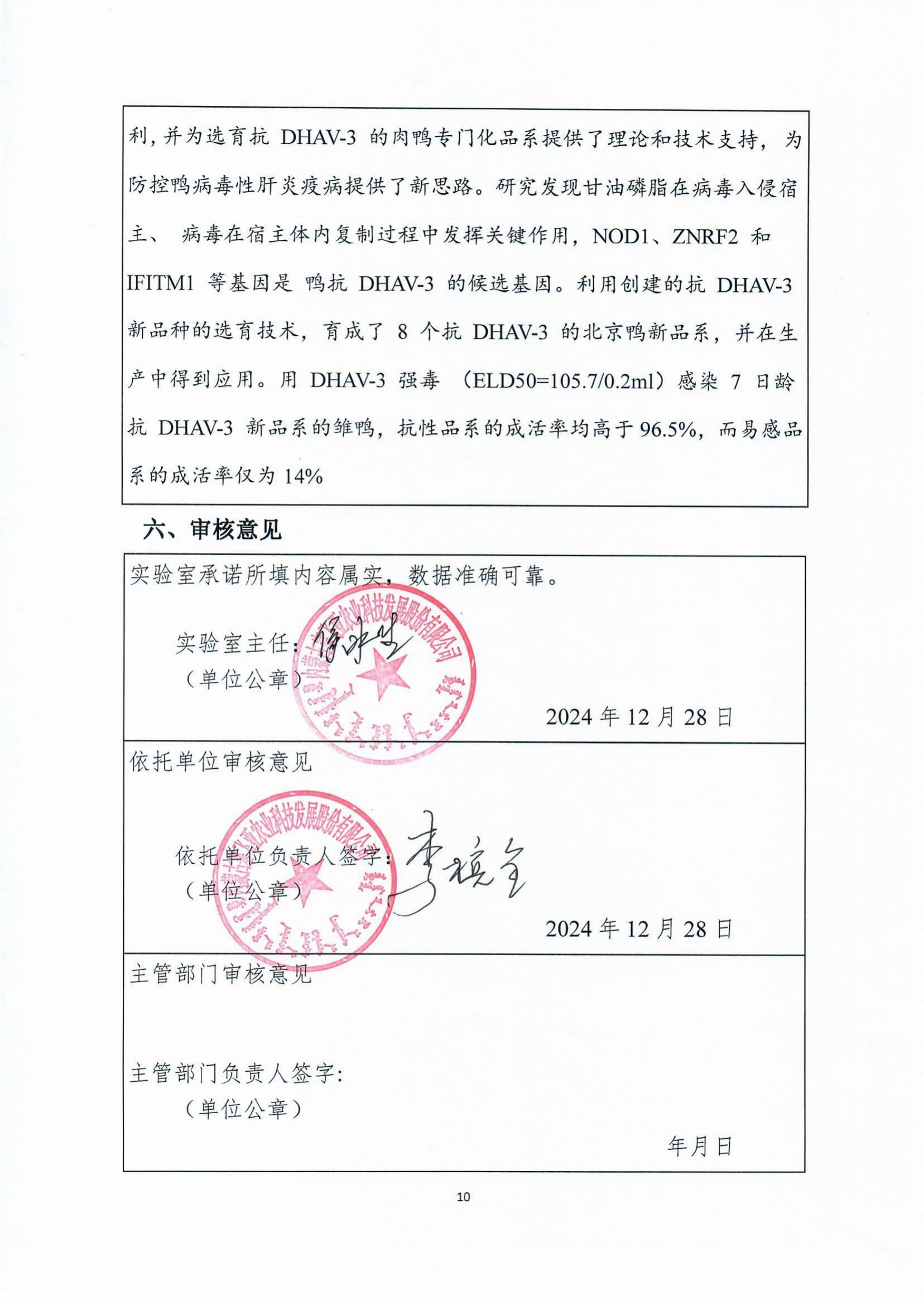 内蒙古自治区肉鸭育种重点实验室报表
